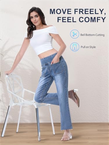 Cropped Pull on Jeans for Women, Trendy Stretchy High Waisted Flared Jeans Skinny Bell Bottom Boot Cut Jeans 7