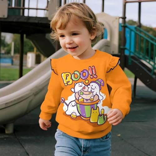 Long Sleeve Sweatshirt for Girls 1-8T Ruffle Shoulders Hoodie for Kids Soft Comfy Tops for Toddler Crewneck Top 5