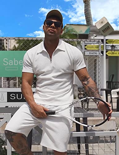 • UNIQUE FEATURES. -- Our casual zipper polo shirt set is finished with a zip neckline, muscle fit cut and complements your physique, while the short is featured with pockets and elastic drawstring, so it is convenient for you to adjust the waist size and store small items.
