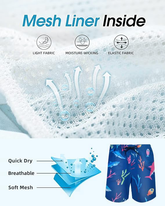 • Mesh Liner and Pockets -- The beach shorts with mesh liner have 2 slanted hand pockets , effective storage wallet, key or other small items.