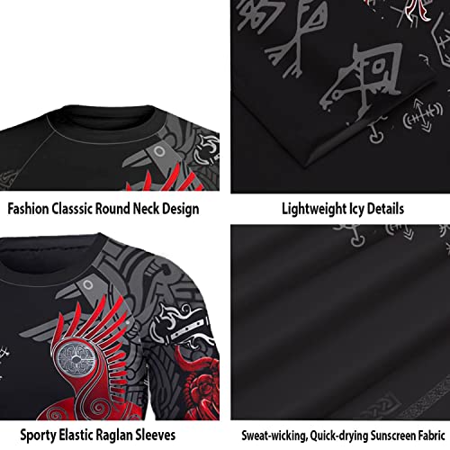 Workout Compression Shirt, Mens Rash Guard Long Sleeve, Jiu Jitsu Rash Guard Men Pattern Viking BJJ Rash Guard 3