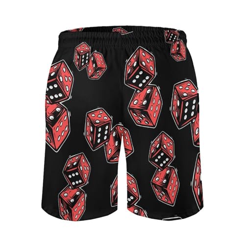 Red Dice Print Men's Swim Trunks Quick Dry Beach Shorts Casual Board Shorts Swimsuits with Pocket 1