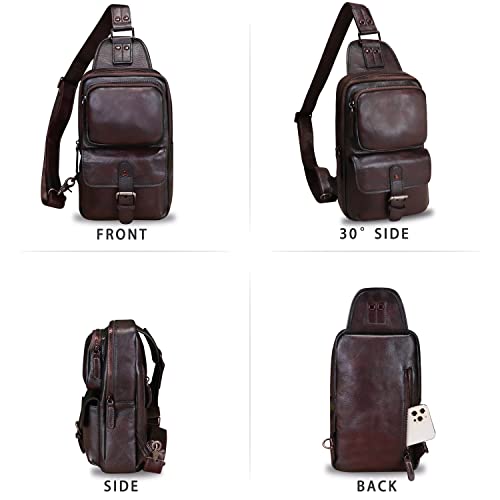 LRTO Genuine Leather Sling Bag Crossbody Motorcycle Bag Handmade Hiking Chest Daypack Retro Shoulder Backpack (Coffee) 7