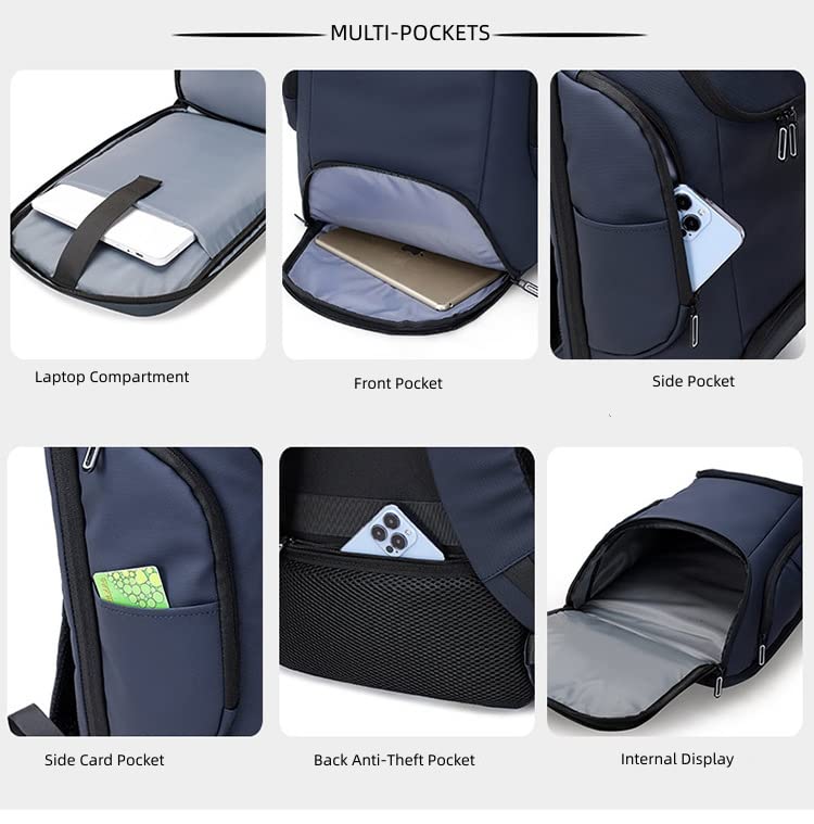 New Cross-border Men's Waterproof Backpack with USB Interface for Casual Travel and Large Capacity (Navy Blue) 5