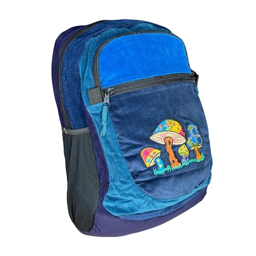 HOT ! Ixchel Medium Patchwork Corduroy Sport Backpack w Mushroom Embroidery & Hidden Pocket – Handmade Backpack Festival Bag