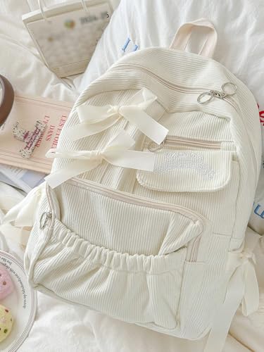 2pcs Minimalist Bow Multi-Pocket Foldable Backpack with Kawaii Case for Women's Training, Commuting, Shopping Travel (2pcs Beige) 5