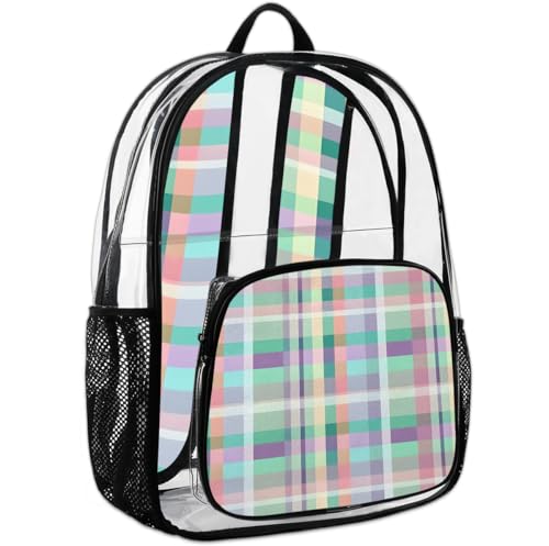 Clear Large Backpack for Stadium Events Transparent Backpacks PVC See Through Clear Bag for Concerts Work Festival Travel Colored Plaid 6