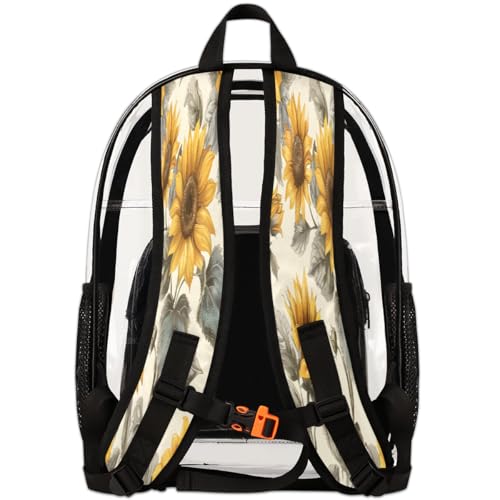 Vintage Sunflower Clear Backpack, Stadium Backpack for Women Men Adult Concert Festival Work Daily Travel 7