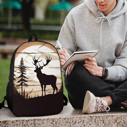 HOT ! Wild Elk Silhouette Backpack for Men Women, Heavy Duty Backpack Large Capacity, Durable Lightweight Travel Daypack