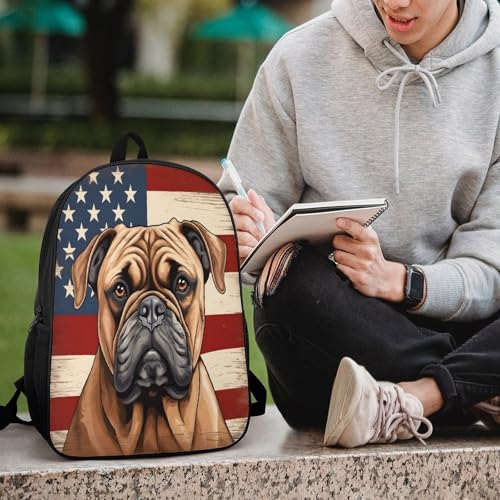Bulldog Dog American Flag Backpack Simple Leisure Travel Backpack Outgoing Daypack 17 Inch 5