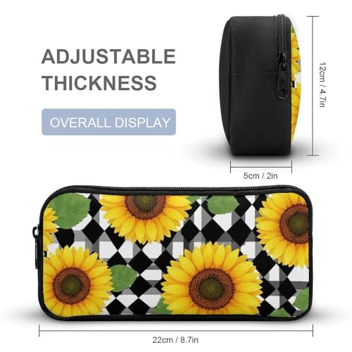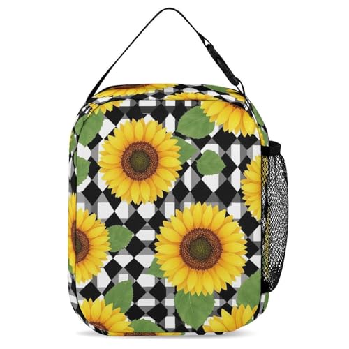 HOT ! Backpack Bookbag Set Backpack with Lunch Box and Makeup Bag Travel Bookbag Daypack Set (Black And White Checkered Sunflower)