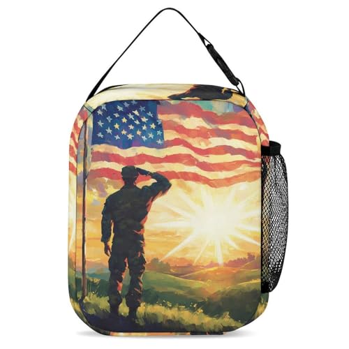 United States Flag Veterans Day Travel Backpack Lunch Box Pencil Case 3Pcs Set for Men Women Office Outing University 7