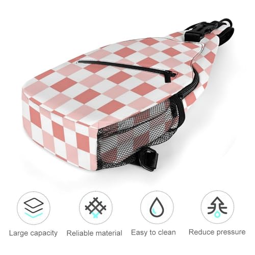 Fashion Traveling Running Casual Chest Bag, Dress Decor Sling Backpack, Shoulder Bag Casual Day Pack Cute Pink Checkered 7