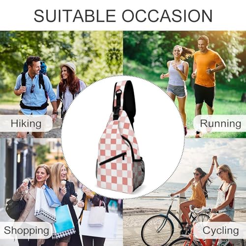 HOT ! Fashion Traveling Running Casual Chest Bag, Dress Decor Sling Backpack, Shoulder Bag Casual Day Pack Cute Pink Checkered