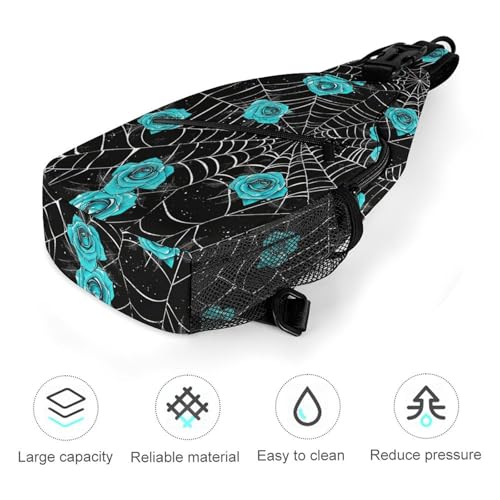 HOT ! Spider Web Cobwebs Blue Rose Sling Bag Crossbody Travel Hiking Chest Multipurpose Travel Daypack for Women Men