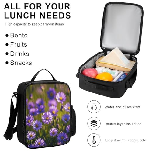 3-in-1 Backpack Combination Set Purple Wildflowers Print 3Pcs Backpack Sets Travel Daypack with Lunch Bag And Cosmetic Bag 4
