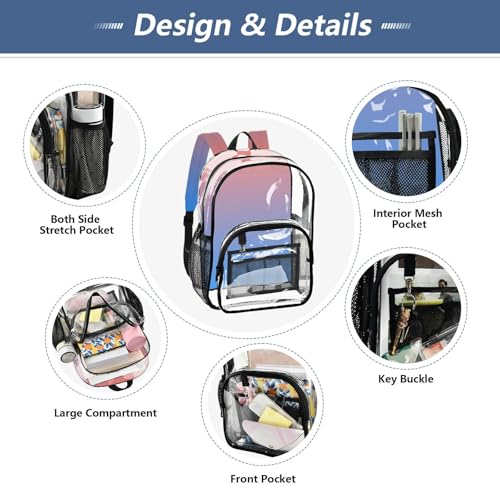 More information about Clear Backpack Women Cute Coral Pink Blue Gradient Kids Backpack for Girls Approved Transparent Bag