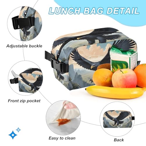 Black Bird Mountain Backpack Lunch Bag Set for Travel Hiking Picnic, Backpacks with Insulated Lunch Box 4