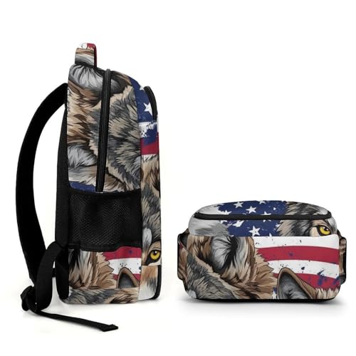 Lightweight Backpack, Women's Elegant Vintage American Flag Wolf Backpack with Pockets and Handle, Reusable Sturdy Travel Shoulder Bag 3
