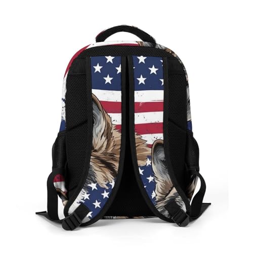 Lightweight Backpack, Women's Elegant Vintage American Flag Wolf Backpack with Pockets and Handle, Reusable Sturdy Travel Shoulder Bag 1