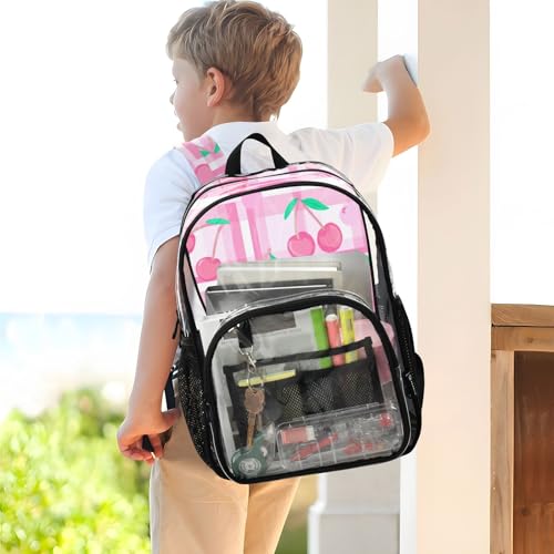 Clear Bag for Women Travel Pink Cherries Green Leaves Girls Backpack Kids Boys Plastic See through Bookbag 2