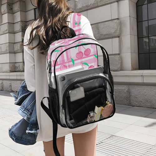 Clear Bag for Women Travel Pink Cherries Green Leaves Girls Backpack Kids Boys Plastic See through Bookbag 7