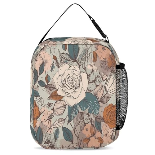 Retro Flower Pattern Printed Backpack With Lunch Pack Storage Box Case 3pcs Lightweight Travel Backpack 7