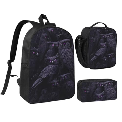 HOT ! Gothic Owl Backpacks 3 Pcs Minimalist Backpack for Men and Women with Fun Graphic Cartoon Print for Travel Work