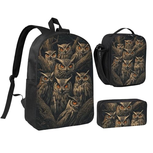HOT ! Vintage gothic Owl Backpacks 3 Pcs Lightweight Casual Backpack with Fun Graphic Cartoon Print for Camping Touring