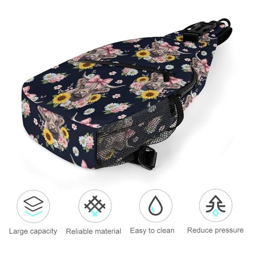 Men's Casual Sling Bag Backpack, Lightweight Crossbody Daypack for Travel Camping Hiking, Sunflower Cattle Highland Cow Bags 7