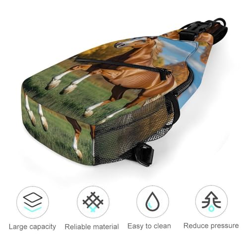 HOT ! Running Brown Horse Crossbody Sling Backpack Casual Chest Bag Fanny Pack for Women Men Travel Hiking