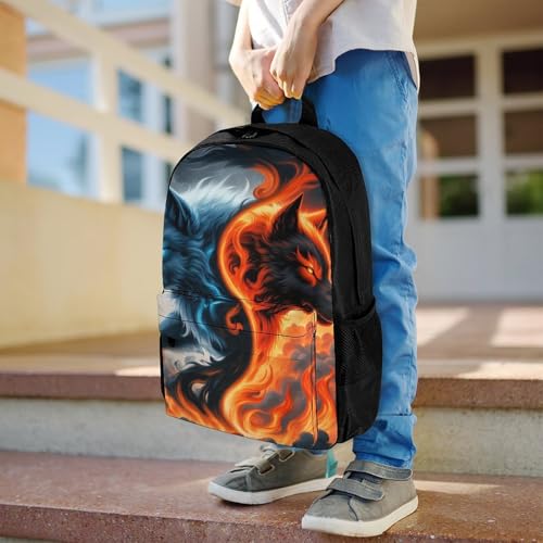 Supdreamc Men Women Lightweight Ice And Fire Yin Yang Wolf Art Backpack Large Capacity Carry On Bag With Padded Straps for Sports Work Walking Cycling 3