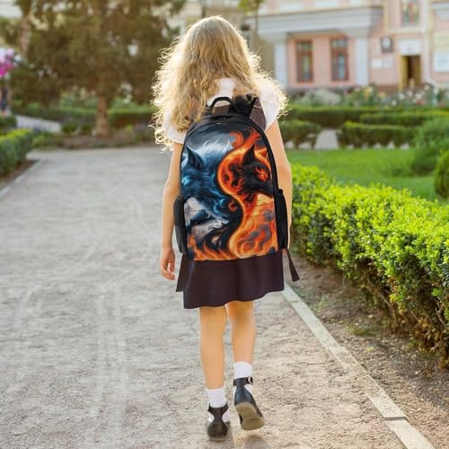 Supdreamc Men Women Lightweight Ice And Fire Yin Yang Wolf Art Backpack Large Capacity Carry On Bag With Padded Straps for Sports Work Walking Cycling 6