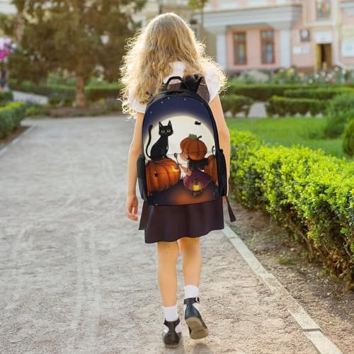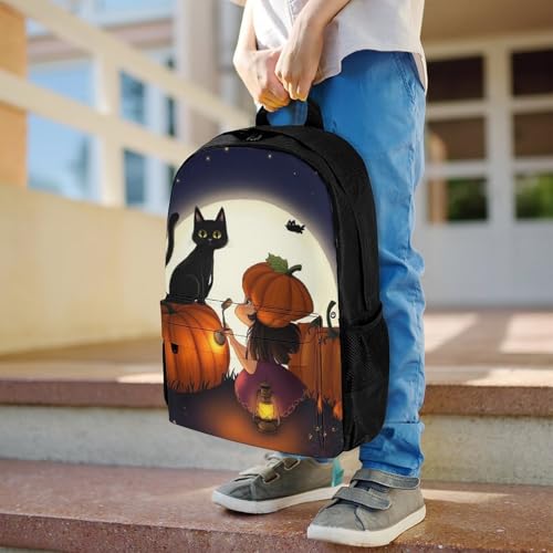 Daypack Bookbag Anti-Theft Multipurpose Large Capacity Bookbag - Fantasy Moon Night GirlGirl Black Cat Pumpkin Field Art Travel Hiking & Camping Rucksack With Adjustable Shoulder Straps 7