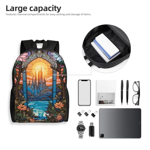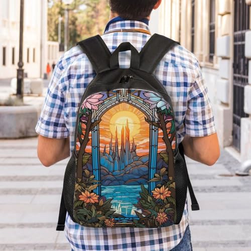 Teen Unisex Backpack Stained Glass Landscape 16Inch Durable Backpack Gym Casual Daypack for Women Men Gift 7
