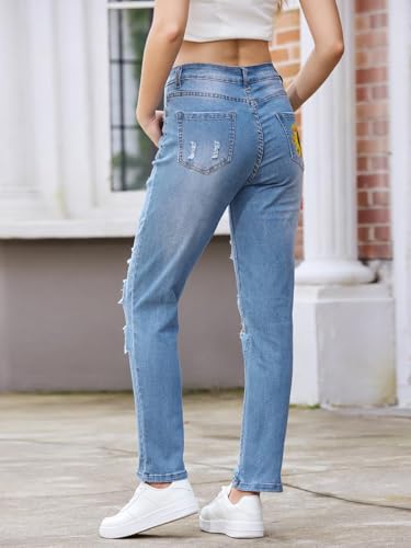 Women's Ripped Jeans Straight Leg Boyfriend Jeans Skinny Stretch Butt Lifting Jeans Slim Fit Denim Pants 6