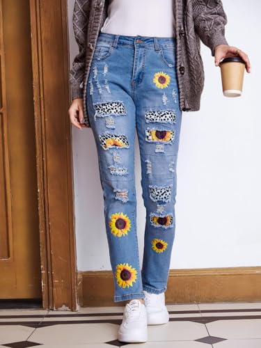 • 【 Novelty Design 】:Womens ripped skinny distressed jeans features with lovely pattern printed, boyfriend style jeans. Straight leg jeans are elegant and stylish when worn without tightness. Casual & Loose fit design, perfectly matches most body shapes and is an ideal addition to your wardrobe