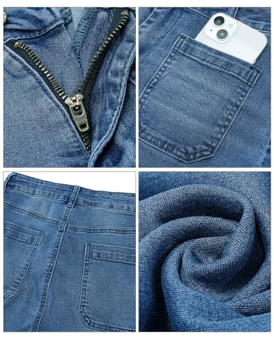More information about Womens Wide Leg High Waisted Sailor Petite Jeans Trendy Cropped Baggy Denim Pants with Patch Pockets