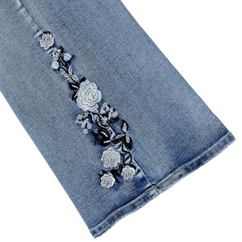 • 【High Waist & Embroidered Detail】: Plus size flare jeans women curvy high-waisted cut smooths midsection and creates an hourglass effect, delicate flower embroidery adds a vintage