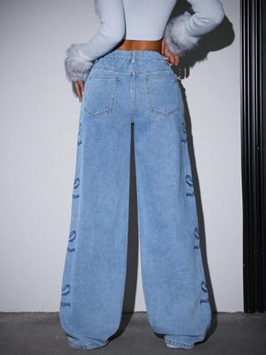 Bow Jeans for Women High Waist Straight Leg Baggy Jeans Y2K Boyfriend Bowknot Print Denim Pants with Pockets 6