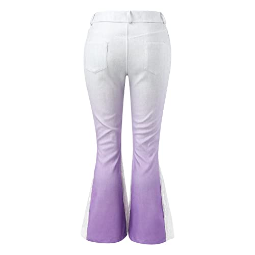 Womens Vintage Flare Denim Pant Trendy Gradient Lace Splicing Bell Bottom Jeans Curvy Slim Butt Lifting Skinny Jeans 7