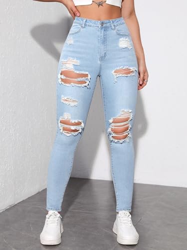 MakeMeChic Women's Ripped Skinny Jeans Casual High Waisted Distressed Stretch Denim Pants 6