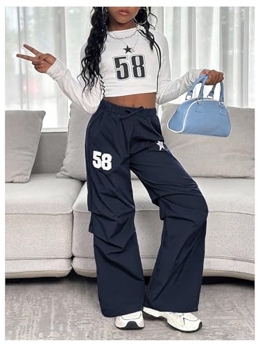 HOT ! Floerns Girl's Parachute Pants Number Elastic Waist Street Wide Leg Baggy Pants