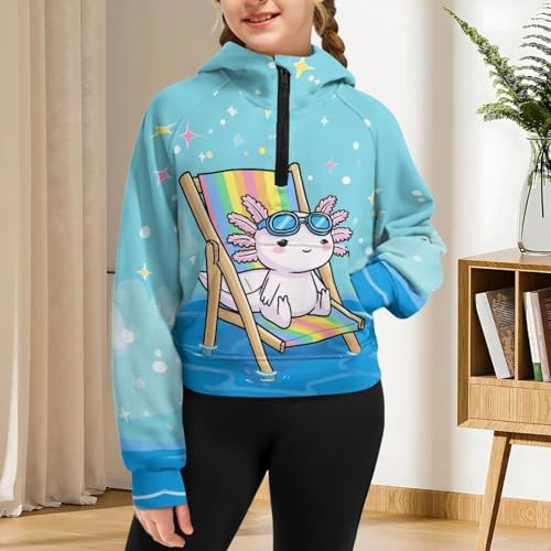Girls Half Zip Up Hoodies Size 5-14T Long Sleeve Crew Neck Hooded Hoodies 3