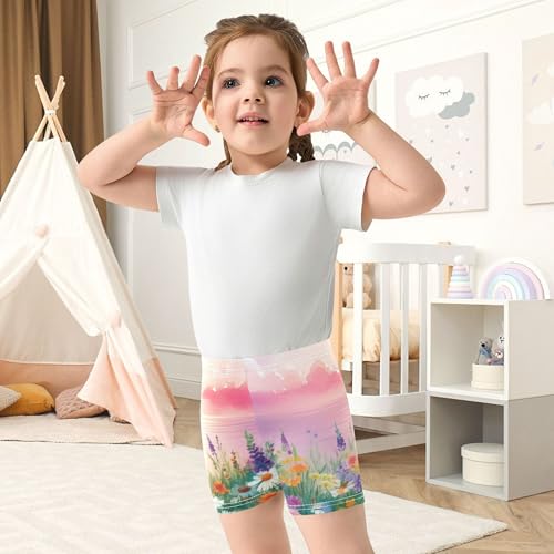 Shorts for Under Dresses Cotton Girls Biker Shorts Toddler 4t Summer Kids Painted Wildflower Meadow Pink 4