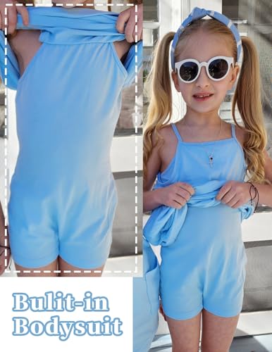 Arshiner Girls Dress with Shorts Casual Summer Spaghetti Straps One Piece Romper Dresses with Pockets for Kid 5-15 Y 1