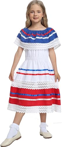 • Cinco de Mayo Dress: The cute pleated waistline fits flexibly, and the pullover is easy to wear. The exquisite lace trim and breathable materials ensure the comfort of your children.