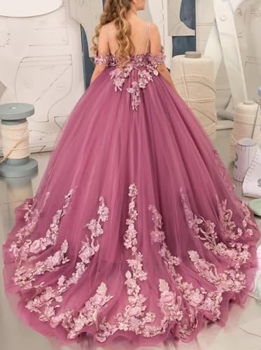 Tulle Girls Pageant Dress 3D Flower Appliques Flower Girl Dresses for Wedding Pageant Ball Gowns 6