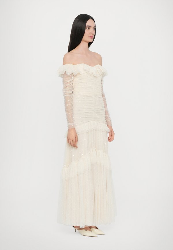 SEQUIN GLIMMER ROUCHED OFF SHOULDER GOWN - Occasion wear - cream 8