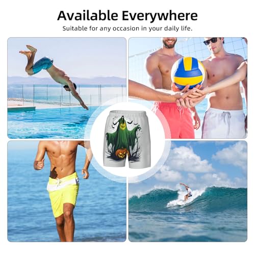 • Versatile Use: For Various Activities Such As Swimming, Surfing, Fishing, Running, Working Out At The Gym, Or Simply Relaxing At Home Or On The Beach. These Green Ghost Horror Halloween Pumpkin Print Mens Bathing Suit 7 Inch Inseam Are For Any Active Lifestyle.